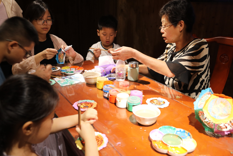 在泉州非物质文化遗产馆,游客们正在体验花灯制作。林凤清 摄