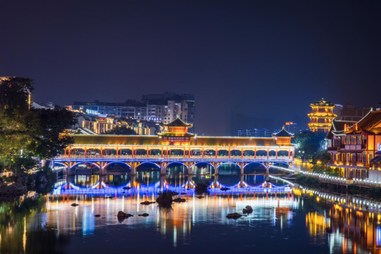图为广西梧州市蒙山县的长寿桥夜景(11月2日摄)。新华网 钟奕 摄