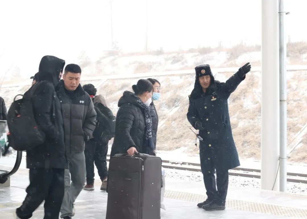 鄂尔多斯车务段“暖行驿站”服务队解答旅客问询,加强旅客乘车引导。