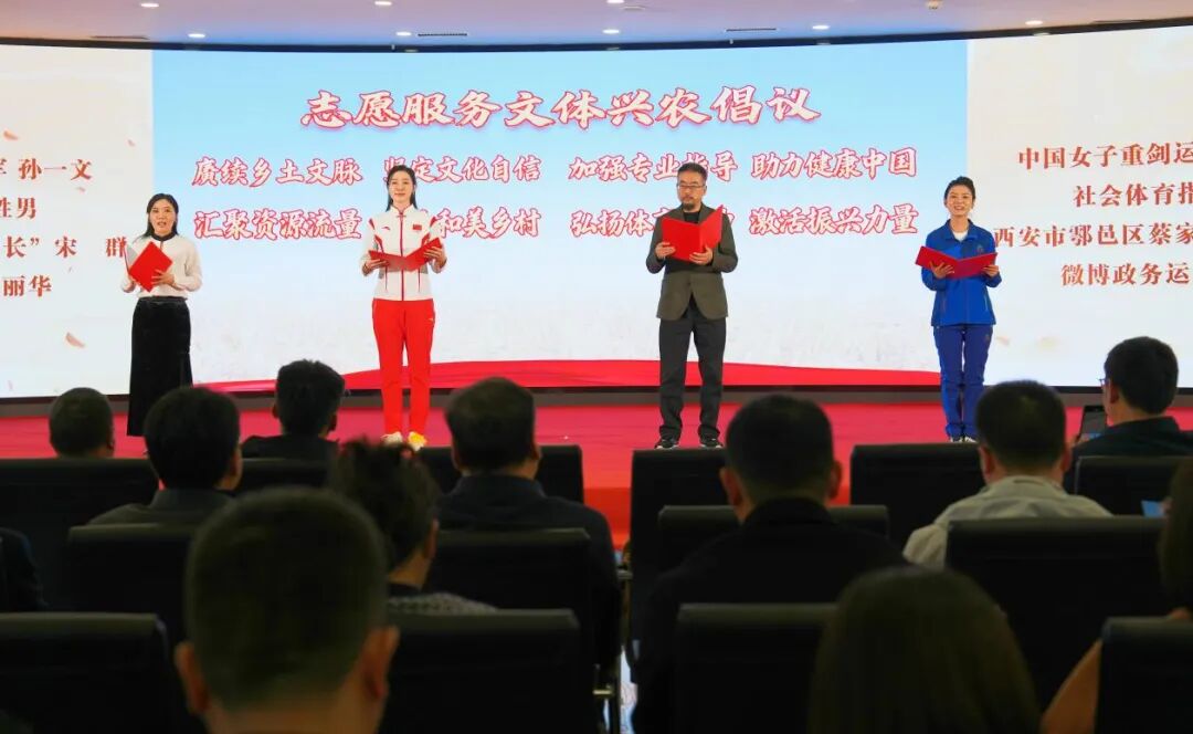 活动现场邀请奥运冠军孙一文领衔志愿者代表发起“志愿服务、文体兴农”倡议。活动隆重推介了贵州省台江县“村BA”等11个社会效益显著、深受群众喜爱的全国“村字号”文化体育活动典型案例。(记者 林凤清 特邀记者 漆世平)