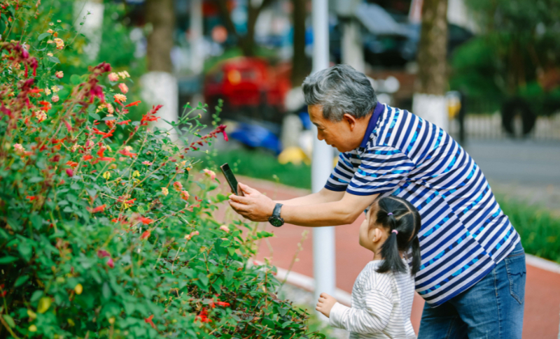 市民在乔松园口袋公园拍摄植物。