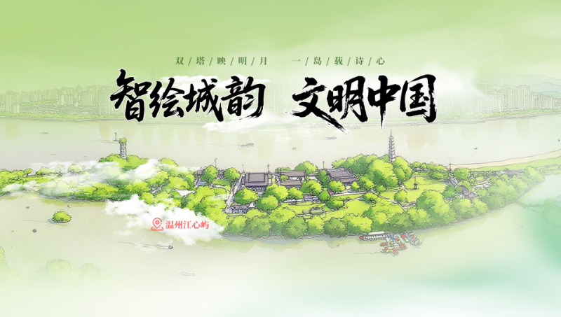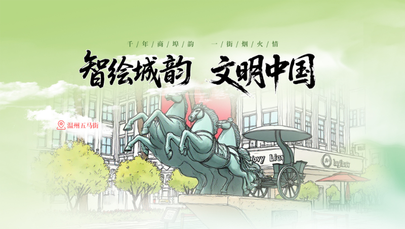 以浙江温州六个文化地标千年古港、国旗馆、道德馆、江心屿、城市书房、五马街为元素,彰显文化书院、城市书房、历史文化街区等城市文化之美。