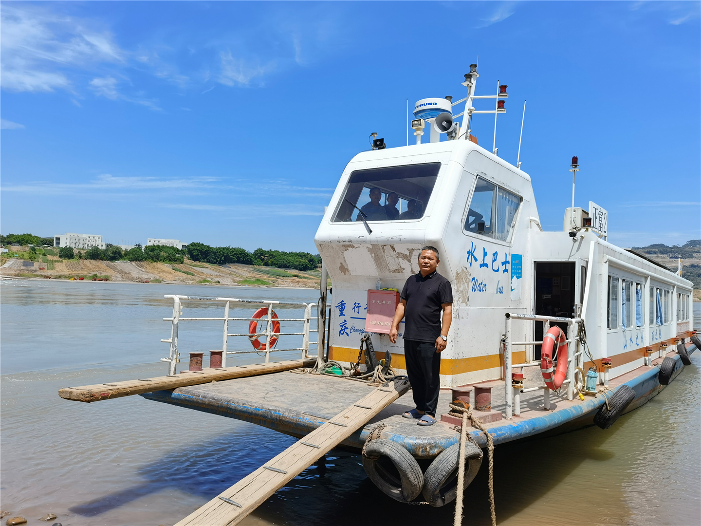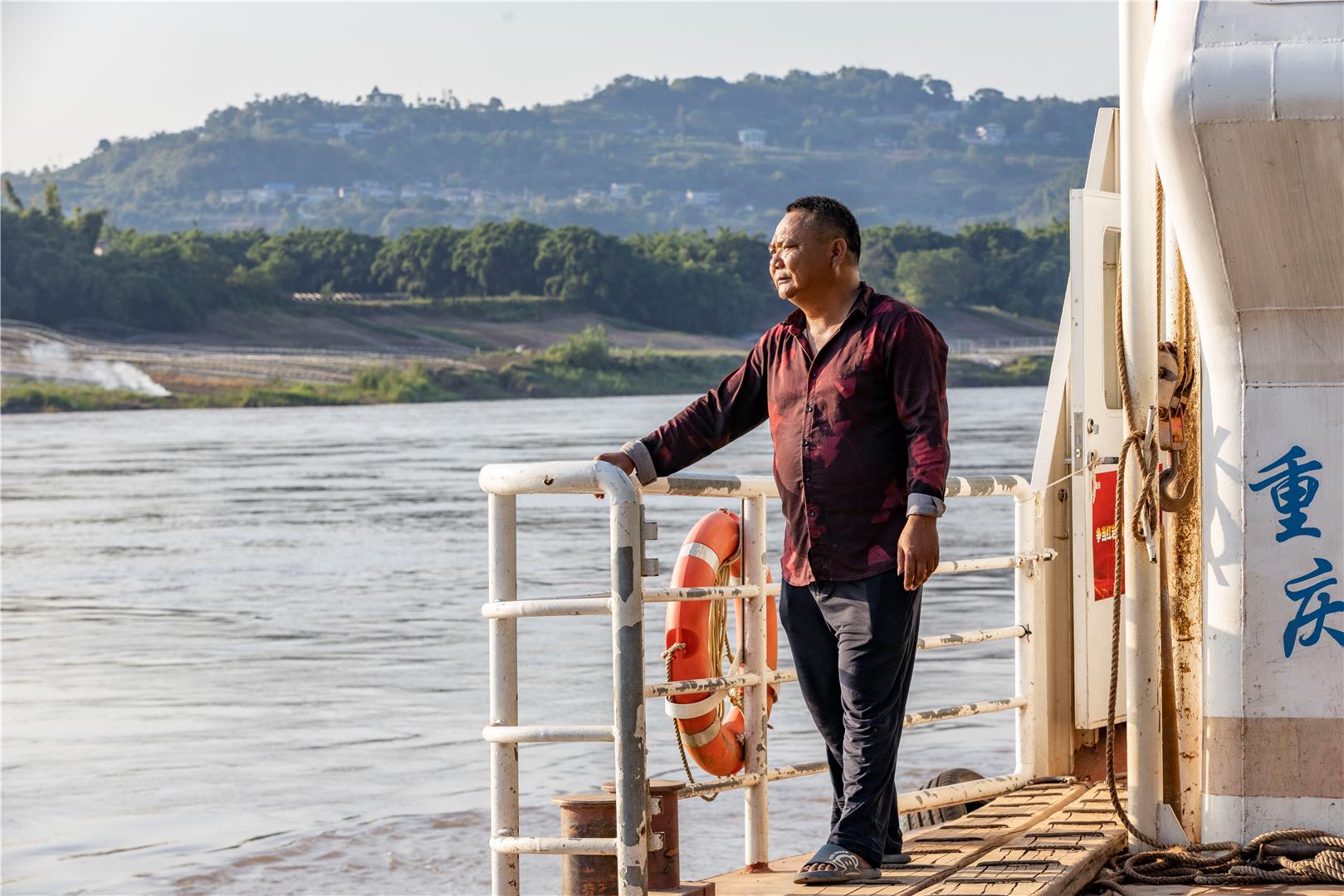 多年的船员生涯,让易中荣的皮肤变得黝黑粗糙,但他的内心却始终明亮而炽热。他坚守着自己的岗位,守护着每一位乘客的安全,践行着自己的信念:只要每一个进出中坝岛的人都能平平安安,就是他最大的成就和幸福。